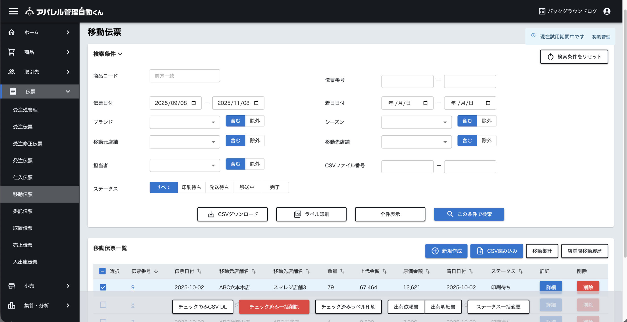 課題だった入出荷や店舗間移動時の在庫管理は、倉庫への移動依頼書の「印刷待ち」・倉庫からの「発送待ち」・「輸送中」・「輸送完了」と4段階でのステータス管理をすることで、正確に在庫を把握できることが分かりました。